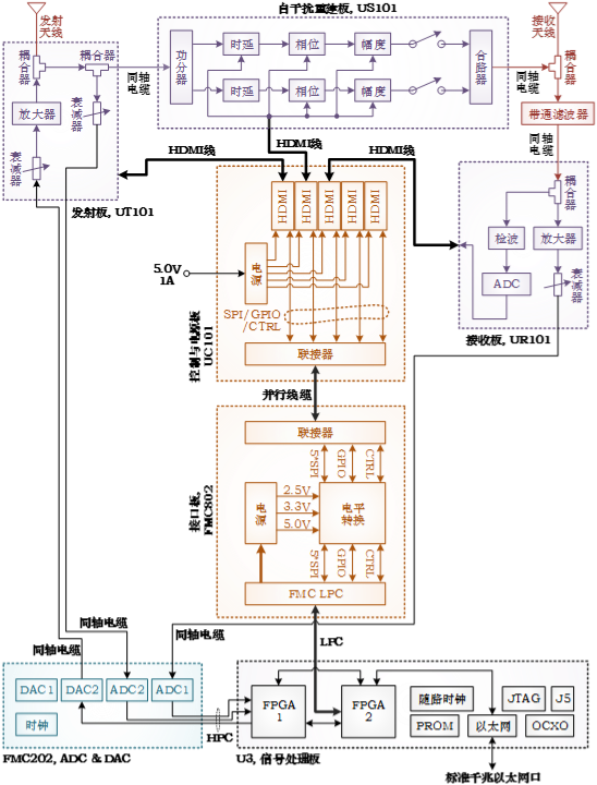 (2) 支持2套U3平台通过光接口子卡(FMC801)级联,完成8发8收MIMO系统;