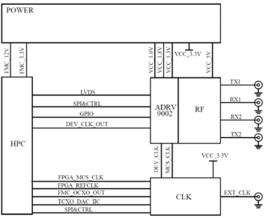 (1) 双通道2发2收TDD射频收发FMC板卡;